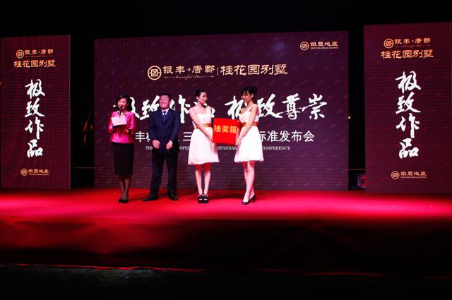 發(fā)布會(huì)現(xiàn)場,除了對銀豐標(biāo)準(zhǔn)之三心物業(yè)服務(wù)標(biāo)準(zhǔn)進(jìn)行介紹外,還為到場嘉賓們準(zhǔn)備了豐盛的晚宴、精彩的文藝表演及激動(dòng)人心的抽獎(jiǎng)活動(dòng)。半山之上,月色之中,飲美酒、品佳肴,嘉賓們樂在其中。舞蹈節(jié)目華麗的舞姿呈現(xiàn)與眾不同的美感,小提琴演奏悠揚(yáng)的琴聲讓人感受心靈的悠閑,為嘉賓了帶來了一段愉悅的時(shí)光。抽獎(jiǎng)環(huán)節(jié)中,10萬元購房代金券、GUCCI皮包、iphone6等讓人驚艷的眾多超級(jí)大獎(jiǎng)在現(xiàn)場一一抽出。
