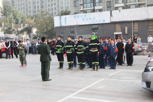 2014年10月17日銀豐物業(yè)組織員工和業(yè)主在銀豐大廈舉行了一場嚴(yán)肅嚴(yán)格、認(rèn)真緊張的消防演習(xí)。本次演習(xí)意在提高大廈業(yè)主和工作人員的消防安全意識,增強(qiáng)員工在緊急情況下的應(yīng)急處理及自我防護(hù)能力,同時(shí)檢驗(yàn)大廈的消防設(shè)施功能。濟(jì)南市市中區(qū)英雄山消防中隊(duì)?wèi)?yīng)邀參加了此次演習(xí)。