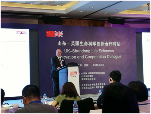 英國駐華大使館、貿(mào)易投資總署公使銜參贊何健中(Kevin Holland)在當(dāng)日會(huì)議上介紹說,英國擁有強(qiáng)大的高校網(wǎng)絡(luò)、排名世界前三的創(chuàng)新能力和很多在全球具有最先進(jìn)水平的技術(shù)研發(fā)中心,英國愿意同中國、同山東在生物醫(yī)藥、生命科學(xué)等方面進(jìn)行合作。作為主管生命科學(xué)、醫(yī)療衛(wèi)生與社會(huì)保障工作的參贊,何健中認(rèn)為,干細(xì)胞再生醫(yī)學(xué)、基因療法、精準(zhǔn)治療、大數(shù)據(jù)技術(shù)等在醫(yī)藥領(lǐng)域的應(yīng)用,都是今后十年山東和英國合作的重點(diǎn)領(lǐng)域。