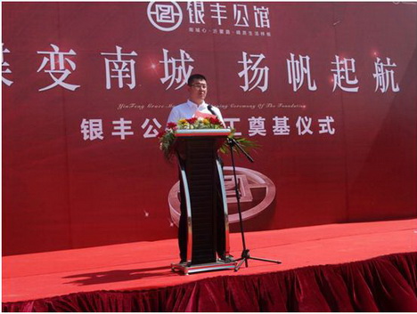 活動伊始,銀豐地產(chǎn)集團(tuán)臨沂大友置業(yè)有限公司總經(jīng)理周言偉先生,首先上臺致歡迎詞,向與會領(lǐng)導(dǎo)及嘉賓重點(diǎn)介紹了銀豐地產(chǎn)集團(tuán)布局戰(zhàn)略及銀豐公館項(xiàng)目概況;隨后,銀豐地產(chǎn)集團(tuán)工程管理部總監(jiān)姚振先生,登臺做奠基致辭,重點(diǎn)闡述了銀豐地產(chǎn)集團(tuán)布局臨沂的決心,以及銀豐地產(chǎn)集團(tuán)對銀豐公館項(xiàng)目的高度重視,承諾銀豐地產(chǎn)集團(tuán)將以高品質(zhì)居住社區(qū)禮獻(xiàn)臨沂人民。臨沂市同城監(jiān)理咨詢有限公司李成勝先生從合作單位角度,明確后期工作開展過程中將嚴(yán)把質(zhì)量關(guān),與銀豐地產(chǎn)集團(tuán)一同樹立高標(biāo)準(zhǔn)建筑標(biāo)桿。